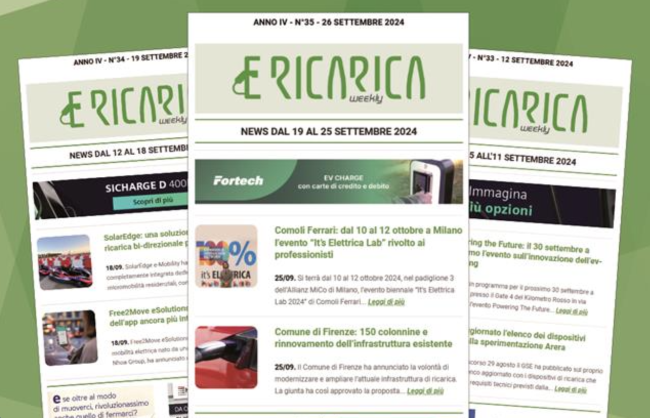 Il nuovo numero di E-Ricarica Weekly la newsletter della testata di Editoriale Farlastrada dedicata alla mobilità elettrica, è disponibile
