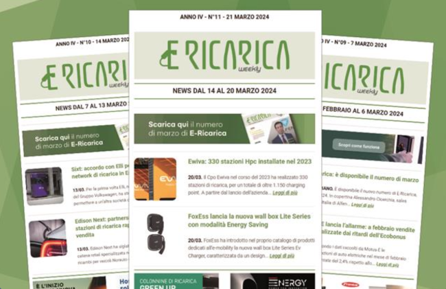 Il nuovo numero di E-Ricarica Weekly la newsletter della testata di Editoriale Farlastrada dedicata alla mobilità elettrica, è disponibile.