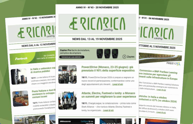 Nuovo numero di E-Ricarica Weekly, la newsletter della testata di Editoriale Farlastrada dedicata alla mobilità elettrica, è disponibile