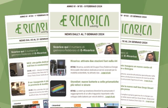 Il nuovo numero di E-Ricarica Weekly la newsletter della testata di Editoriale Farlastrada dedicata alla mobilità elettrica, è disponibile.