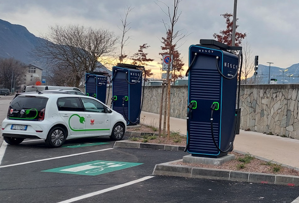 Il Neogy Hub di Merano ospita tre Hypercharger Alpitronic, per un totale di 6 charging point da 300 kW di potenza.