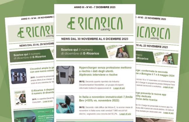 Il nuovo numero di E-Ricarica Weekly la newsletter della testata di Editoriale Farlastrada dedicata alla mobilità elettrica, è disponibile.
