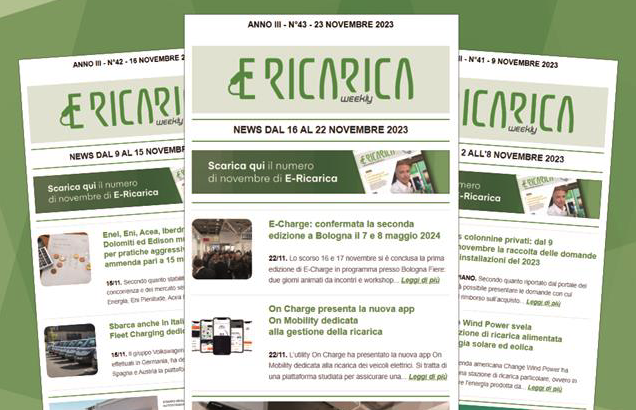 Il nuovo numero di E-Ricarica Weekly la newsletter della testata di Editoriale Farlastrada dedicata alla mobilità elettrica, è disponibile.