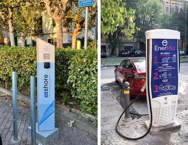 La colonnina di Cogeser, ad accesso pubblico 24 ore su 24, è una soluzione in AC da 22 kW con doppia presa di Tipo 2 e due stalli dedicati.