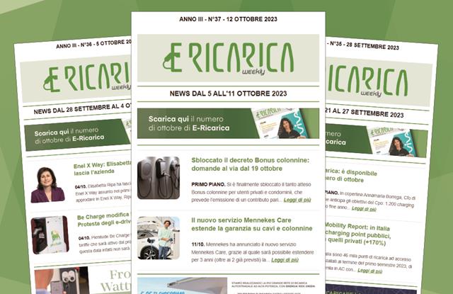 Il nuovo numero di E-Ricarica Weekly la newsletter della testata di Editoriale Farlastrada dedicata alla mobilità elettrica, è disponibile.