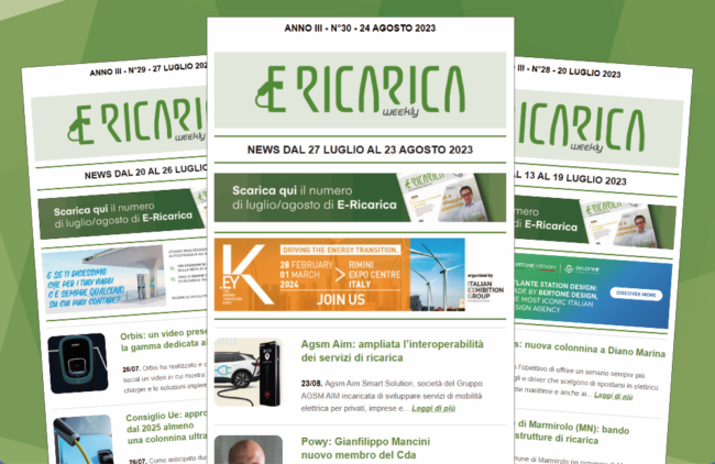 Il nuovo numero di E-Ricarica Weekly la newsletter della testata di Editoriale Farlastrada dedicata alla mobilità elettrica, è disponibile.