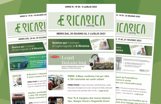 Il nuovo numero di E-Ricarica Weekly la newsletter della testata di Editoriale Farlastrada dedicata alla mobilità elettrica, è disponibile.