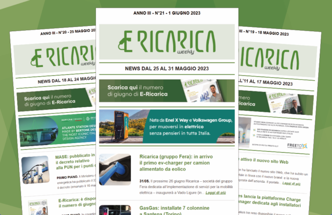 Il nuovo numero di E-Ricarica Weekly la newsletter della testata di Editoriale Farlastrada dedicata alla mobilità elettrica, è disponibile.