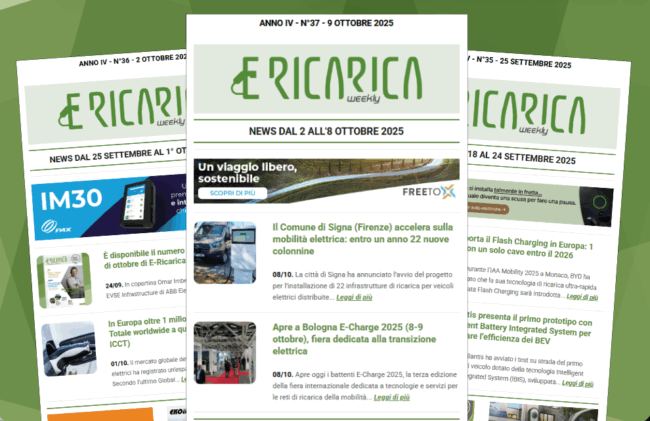 Nuovo numero di E-Ricarica Weekly, la newsletter della testata di Editoriale Farlastrada dedicata alla mobilità elettrica, è disponibile