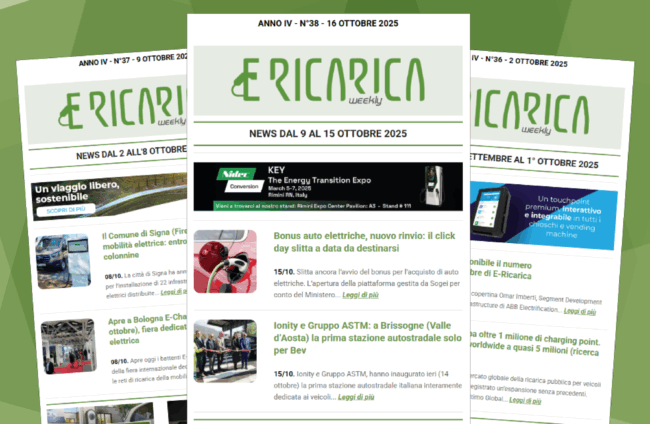 Nuovo numero di E-Ricarica Weekly, la newsletter della testata di Editoriale Farlastrada dedicata alla mobilità elettrica, è disponibile