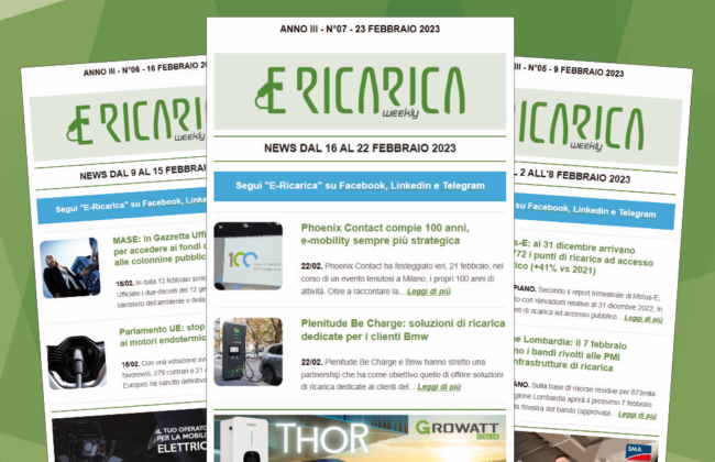 Il nuovo numero di E-Ricarica Weekly la newsletter della testata di Editoriale Farlastrada dedicata alla mobilità elettrica, è disponibile.