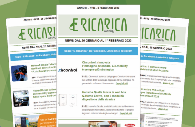 Il nuovo numero di E-Ricarica Weekly la newsletter della testata di Editoriale Farlastrada dedicata alla mobilità elettrica, è disponibile.