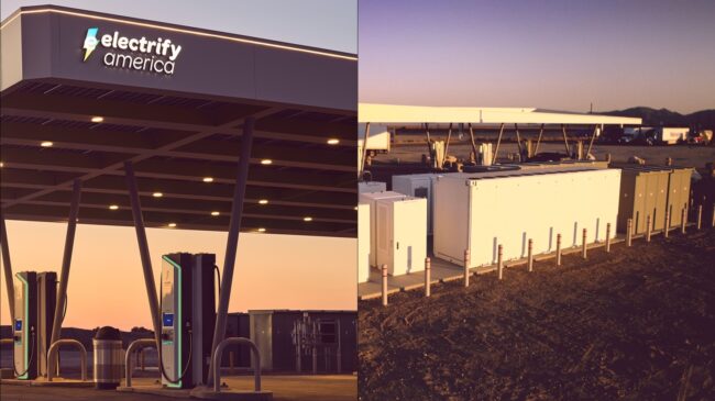 Il sistema Bess utilizzato da Electrify America lavora in abbinamento a una pensilina con pannelli fotovoltaici con potenza pari a 66 kW.