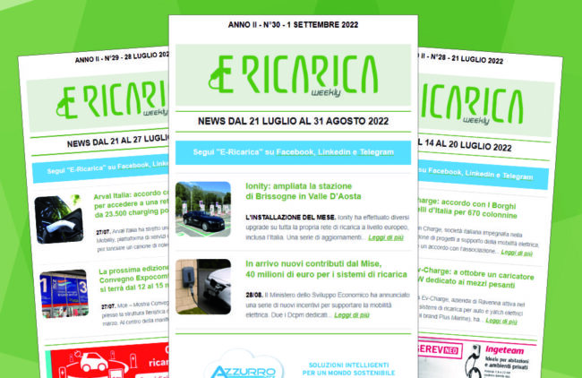 Il nuovo numero di E-ricarica Weekly la newsletter della testata di Editoriale Farlastrada dedicata alla mobilità elettrica, è disponibile.