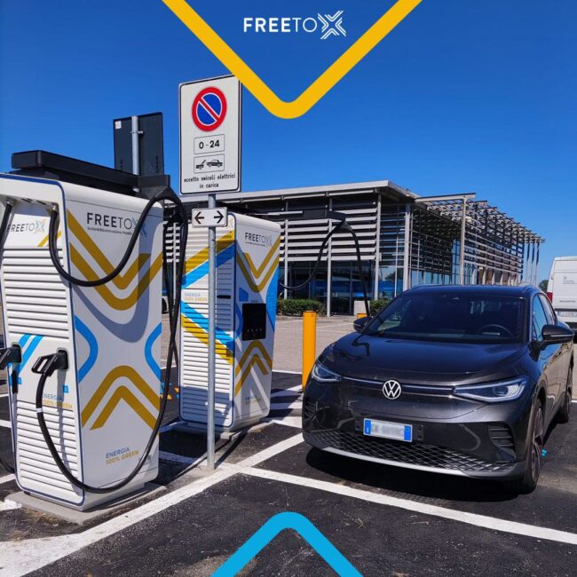 Free To X conta 22 stazioni di ricarica attive lungo la rete autostradale italiana. L’obiettivo è fissato a 100 stazioni entro l’estate 2023.