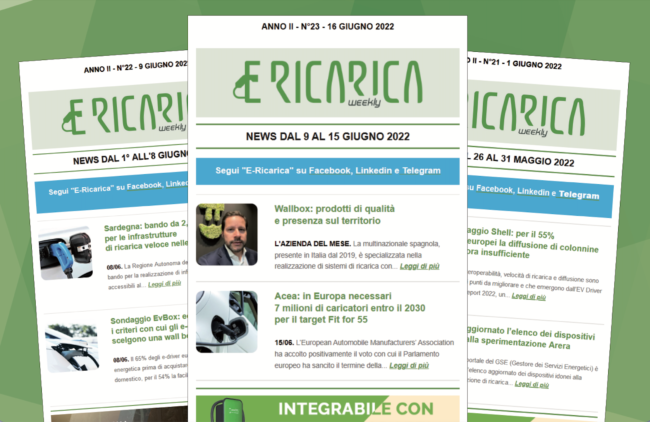 Il nuovo numero di E-ricarica Weekly la newsletter della testata di Editoriale Farlastrada dedicata alla mobilità elettrica, è disponibile.