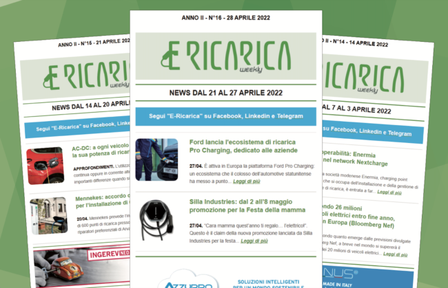 Il nuovo numero di E-ricarica Weekly la newsletter della testata di Editoriale Farlastrada dedicata alla mobilità elettrica, è disponibile.