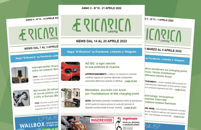 Il nuovo numero di E-ricarica Weekly la newsletter della testata di Editoriale Farlastrada dedicata alla mobilità elettrica, è disponibile.