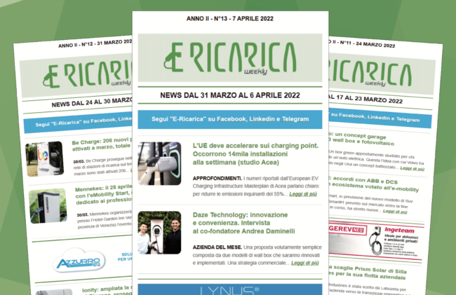 Il nuovo numero di E-ricarica Weekly la newsletter della testata di Editoriale Farlastrada dedicata alla mobilità elettrica, è disponibile.