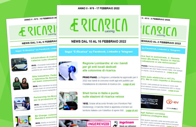 Il nuovo numero di E-ricarica Weekly la newsletter della testata di Editoriale Farlastrada dedicata alla mobilità elettrica, è disponibile.