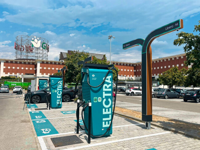 Il sito Ewiva è dotato di due colonnine da 150 kW ciascuna, per un totale di quattro punti di ricarica ad alta potenza