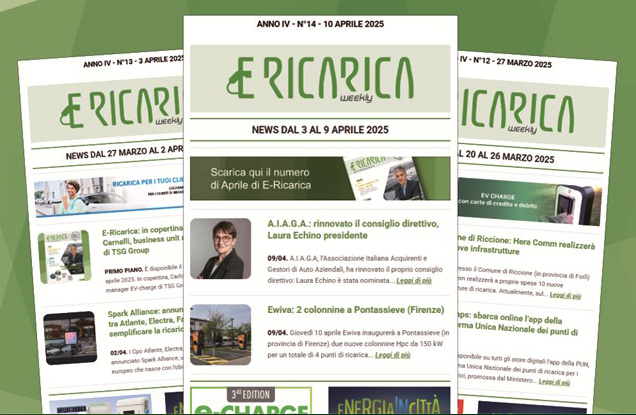 Nuovo numero di E-Ricarica Weekly la newsletter della testata di Editoriale Farlastrada dedicata alla mobilità elettrica, è disponibile