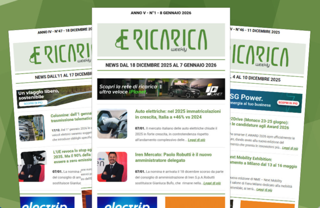 Nuovo numero di E-Ricarica Weekly, la newsletter della testata di Editoriale Farlastrada dedicata alla mobilità elettrica, è disponibile