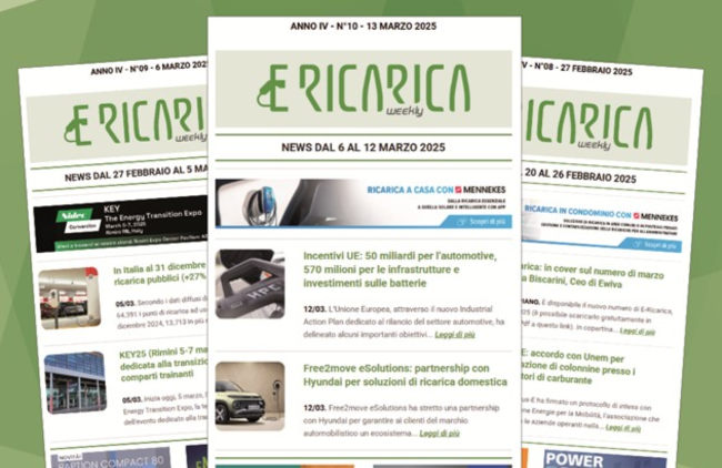 Nuovo numero di E-Ricarica Weekly la newsletter della testata di Editoriale Farlastrada dedicata alla mobilità elettrica, è disponibile