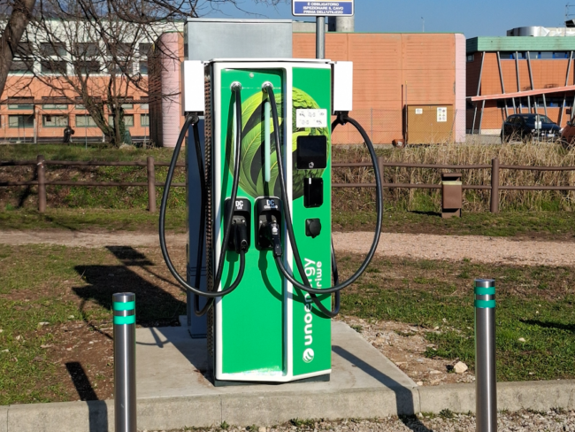 Una caratteristica distintiva dell’installazione realizzata da Unoenergy è il supporto della tecnologia Vehicle-to-Grid (V2G)