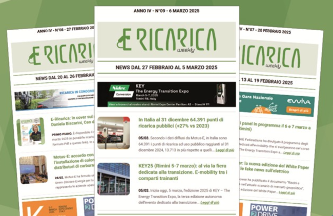 uovo numero di E-Ricarica Weekly la newsletter della testata di Editoriale Farlastrada dedicata alla mobilità elettrica, è disponibile