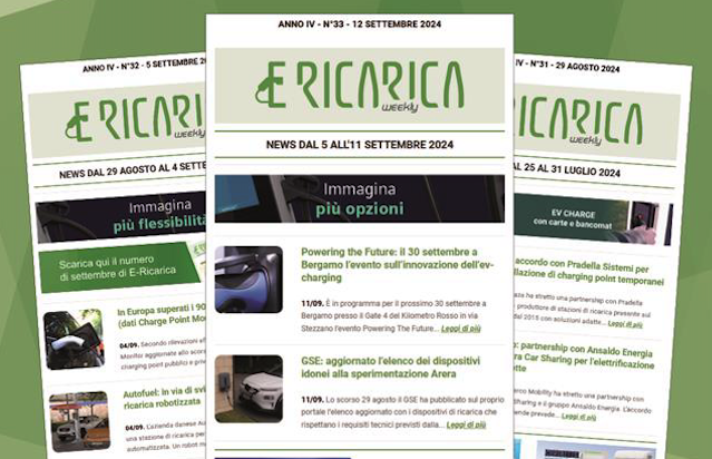 Il nuovo numero di E-Ricarica Weekly la newsletter della testata di Editoriale Farlastrada dedicata alla mobilità elettrica, è disponibile.