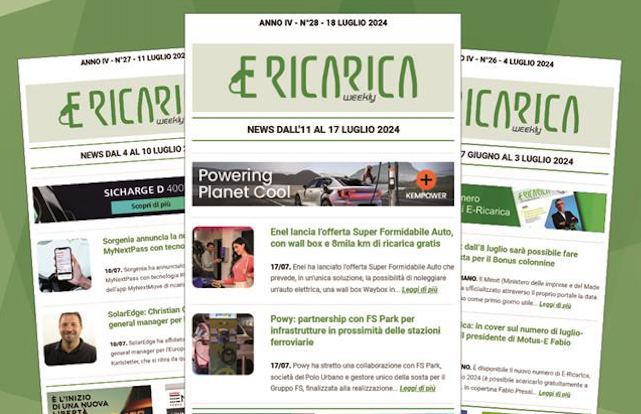 Il nuovo numero di E-Ricarica Weekly la newsletter della testata di Editoriale Farlastrada dedicata alla mobilità elettrica, è disponibile