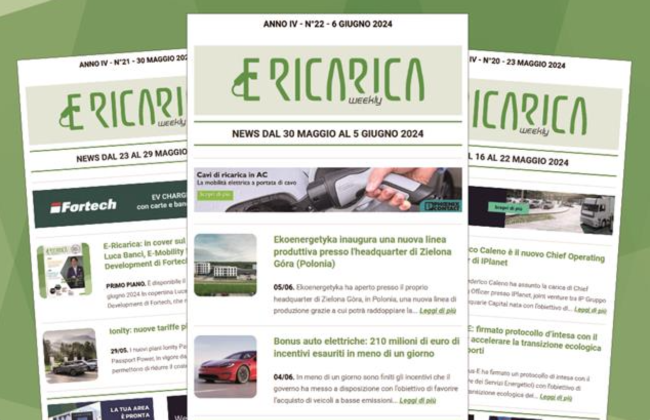 Il nuovo numero di E-Ricarica Weekly la newsletter della testata di Editoriale Farlastrada dedicata alla mobilità elettrica, è disponibile.
