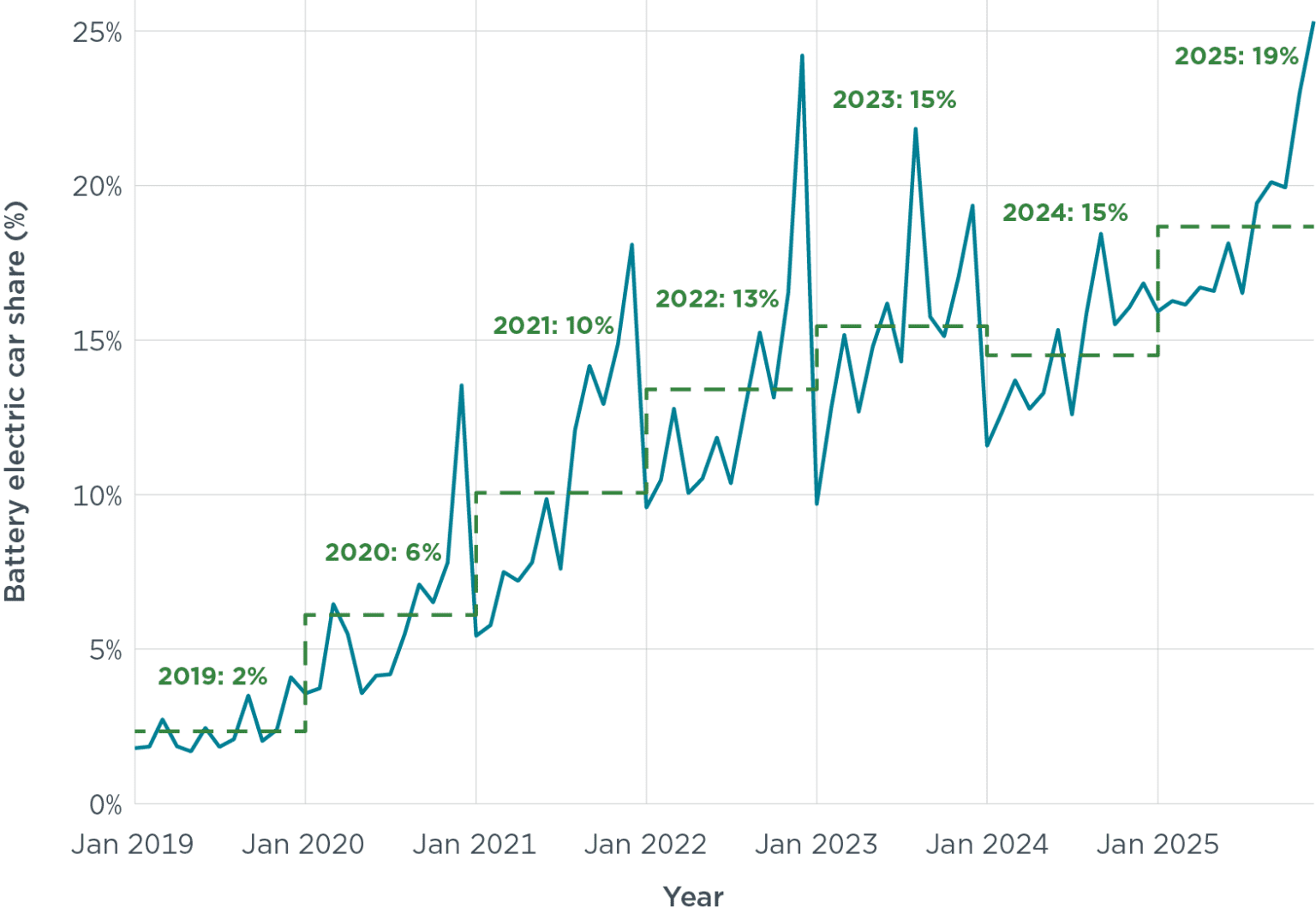 Secondo lo studio, la performance italiana è stata sostenuta in larga parte dagli ultimi due mesi dell’anno. A novembre sono state vendute oltre 15 mila auto elettriche e a dicembre più di 12 mila, circa il doppio della media mensile registrata nel resto del 2025. Un’accelerazione legata all’introduzione del nuovo schema di incentivi finanziato con risorse PNRR non utilizzate, promosso dal Ministero dell’Ambiente e della Sicurezza Energetica. A livello europeo, l’espansione delle vendite di auto elettriche ha avuto un impatto diretto anche sulle emissioni medie della flotta di nuove immatricolazioni. Nel 2025 il valore medio si è ridotto di oltre 10 grammi di CO₂ per chilometro rispetto al 2024, avvicinando ulteriormente i costruttori ai target UE di 93 gCO₂/km previsti per il 2027. Il divario residuo si è ridotto a soli 4 gCO₂/km, un risultato che i ricercatori attribuiscono in larga misura alla crescita del mercato BEV.