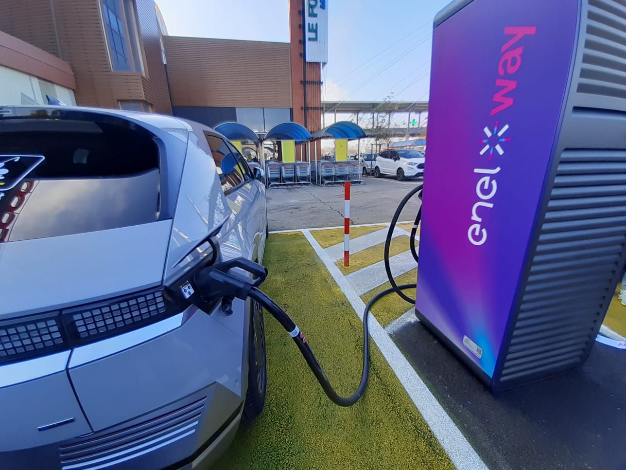 Enel X Way ha inaugurato la scorsa settimana due colonnine ad alta potenza a Beinasco (in provincia di Torino) presso il centro commerciale Le Fornaci, situato alle porte del capoluogo piemontese. L’infrastruttura consente a quattro veicoli di ricaricare contemporaneamente (due per ogni colonnina). Il modello JuicePump Ultra di Enel X Way è un charger in DC che può ricaricare fino a 300 oppure 350 kW di potenza: le stazioni installate presso il parcheggio del centro commerciale sono equipaggiate con 4 connettori CCS 2 Combo.