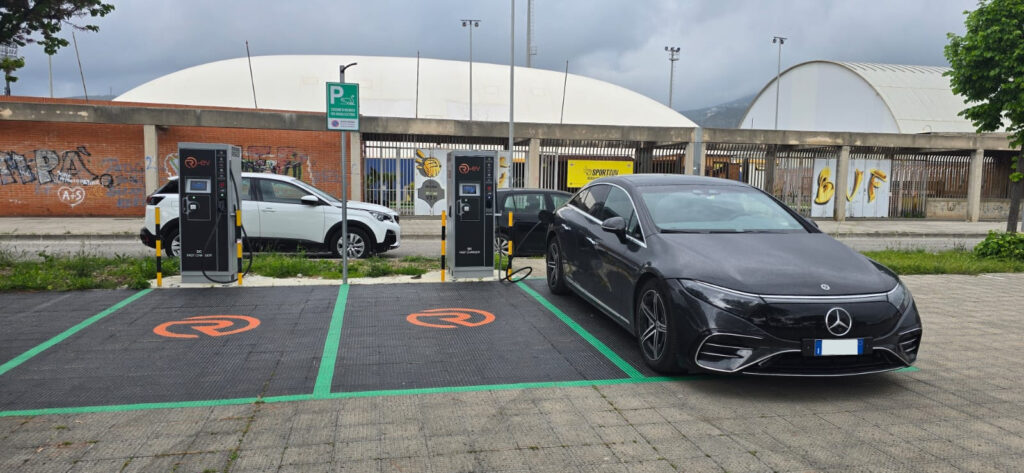 Gli stalli sono di tipo passante, onde evitare di dover sganciare un eventuale rimorchio terminata la ricarica.