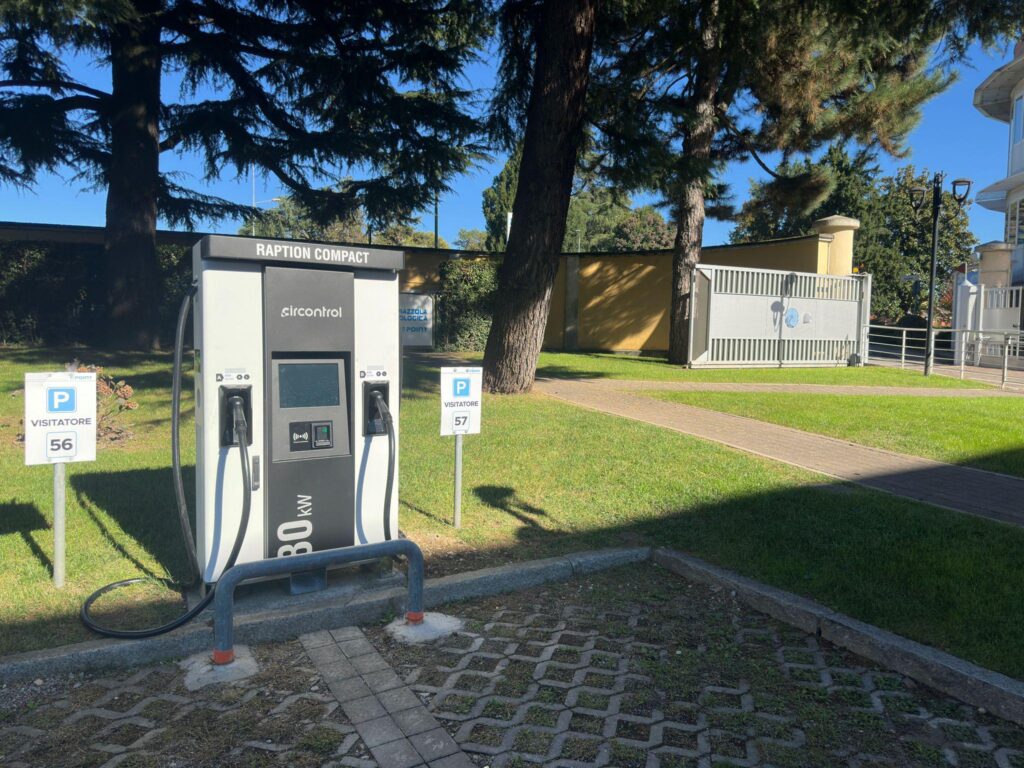 Brianza Nord offre due colonnine ultra fast da 300 kW con 4 punti di ricarica, ma gli stalli adiacenti sono già stati cablati per poter aggiungere altri charging point se necessario